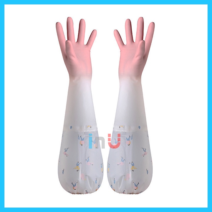 Giới thiệu HCM - Găng tay dài rửa chén có thun chống tuột màu Pastel phối trắng có lót nhung và không nhung