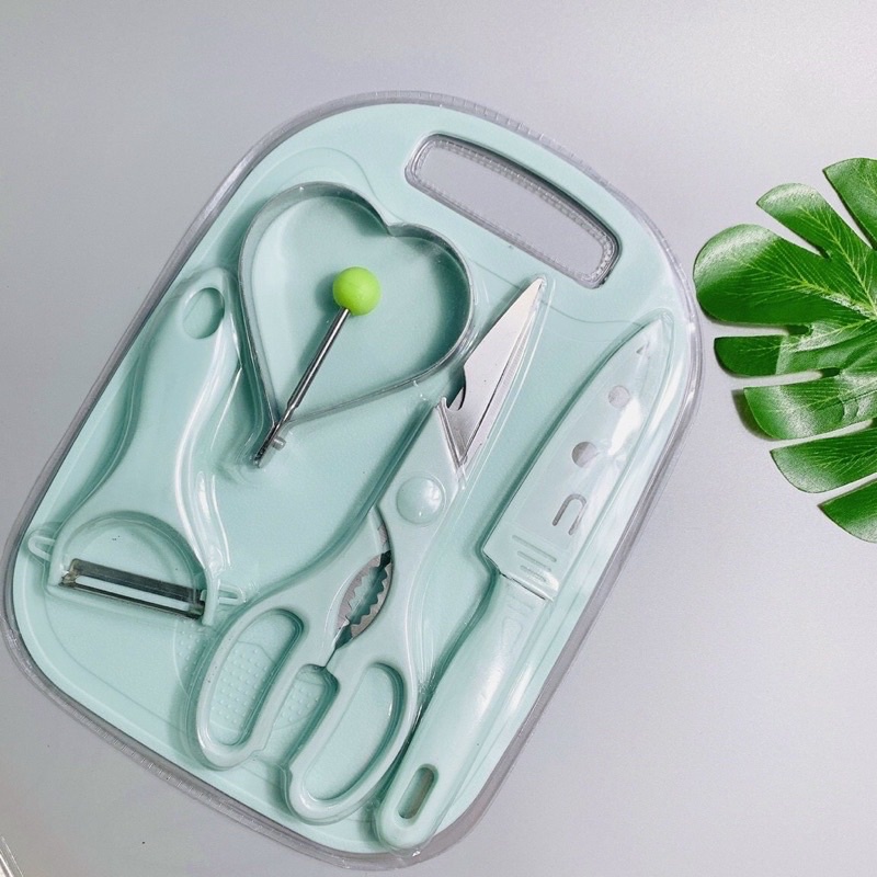 [HCM-GIÁ RẺ] Bộ dao thớt 5 món chế biến ăn dặm cho bé, bộ dao thớt nhà bếp.