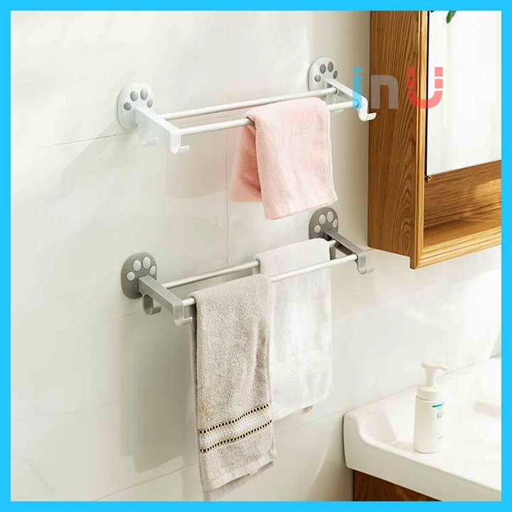 Nhà cửa & Đời sống > Đồ dùng phòng tắm > Kệ để đồ phòng tắm || HCM - Giá treo khăn 2 tầng 46cm chân mèo dán tường không cần khoan bắt vít tiện dụngCòn hàng