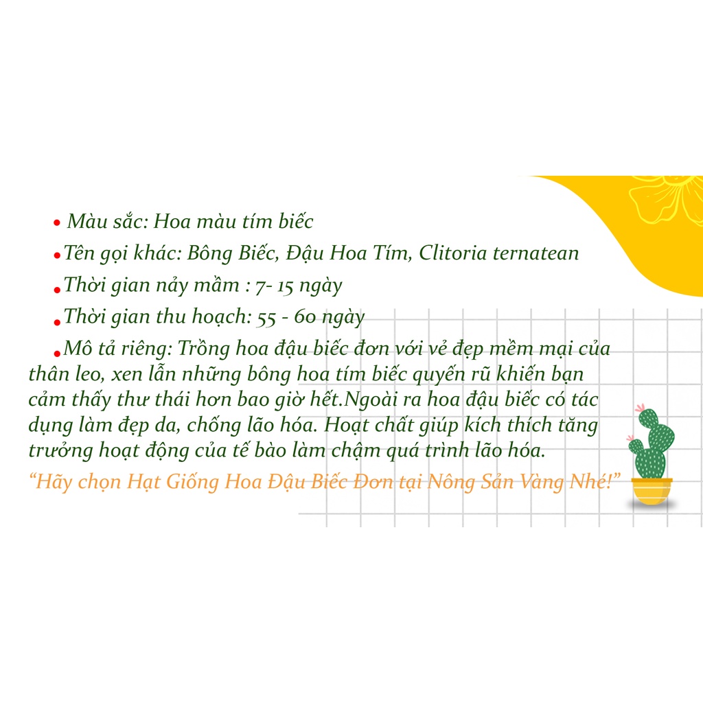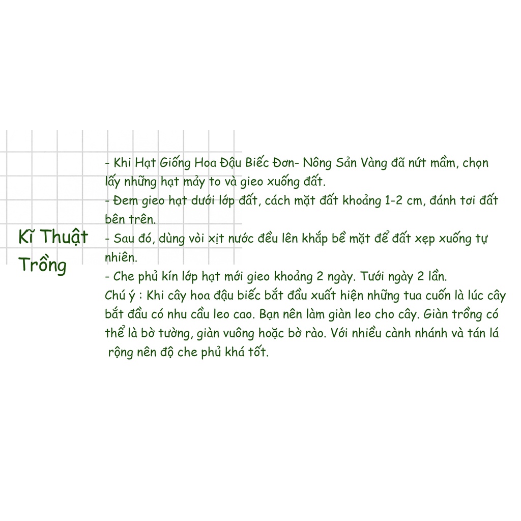 Nhà cửa & Đời sống > Làm vườn > Hạt giống & chất hỗ trợ trồng cây || [HCM] Hạt giống Hoa Đậu Biếc Đơn ( Gói 20 hạt ) - Nông Sản VàngCòn hàng