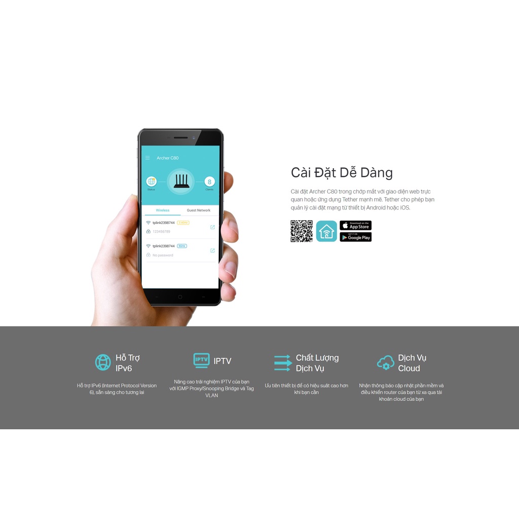 🏷️ BỘ PHÁT WIFI ARCHER C80 BĂNG TẦN KÉP CHUẨN AC1900 MU-MIMO 3x3📌 TÍNH NĂNG NỔI BẬT: