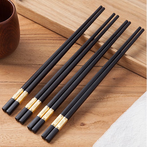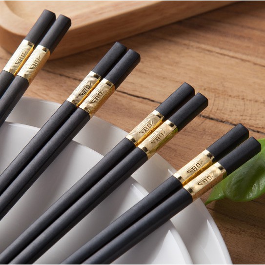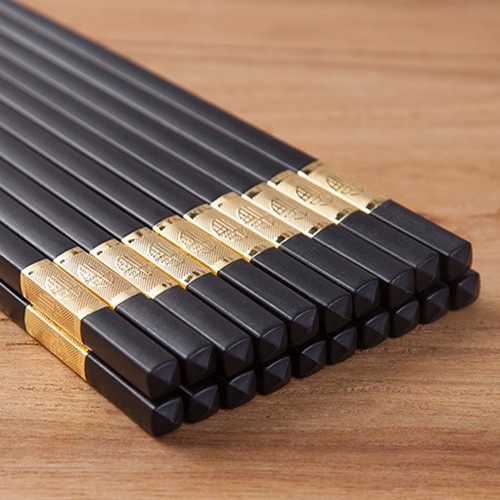 HCM - Hộp 10 đôi đũa đen viền Phúc vàng hàng đẹp, cầm chắc tay