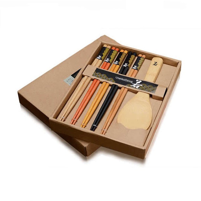 Nhà cửa & Đời sống > Dụng cụ nhà bếp > Cây vét bột & đồ gắp thức ăn || HCM - Hộp 5 đôi đũa và xới cơm gỗ kiểu Nhật cao cấpCòn hàng