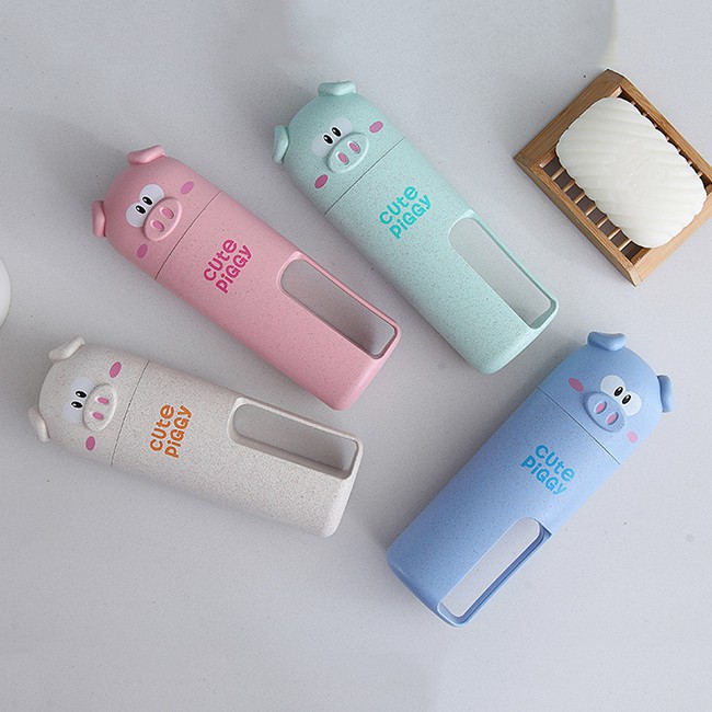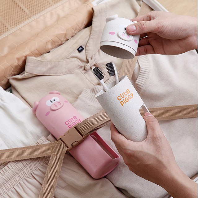 Nhà cửa & Đời sống > Đồ dùng phòng tắm > Kệ đựng bàn chải, kệ nhả kem đánh răng || HCm - Hộp đựng bàn chải lúa mì hình con Heo kèm 2 bàn chải heo dễ thươngCòn hàng
