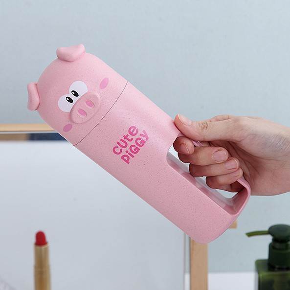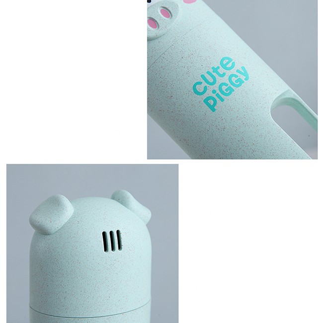 HCm - Hộp đựng bàn chải lúa mì hình con Heo kèm 2 bàn chải heo dễ thương