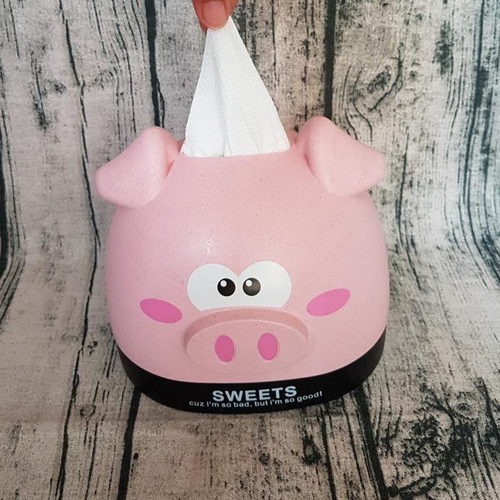 Giới thiệu HCM - Hộp đựng khăn giấy lúa mì thiên nhiên hình Heo hồng kute dễ thương