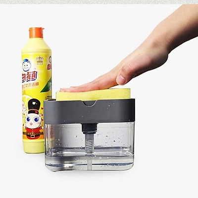 Hộp đựng nước rửa chén bát có vòi giúp tiết kiệm thời gian rửa chén hơn, thiết kế thông minh, tiện dụng vòi hút giúp hút nước rửa chén lên mà không cần thao tác quá nhiều, chỉ cần NHẤN để bổ sung nước rửa chén.