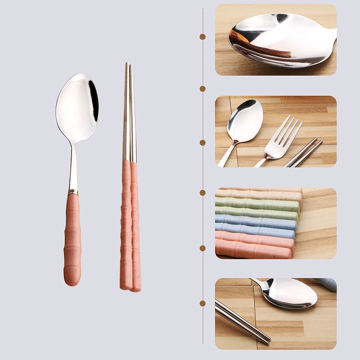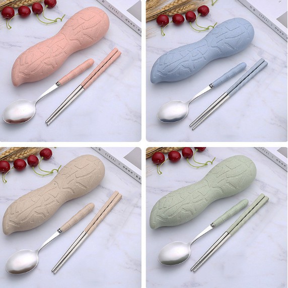 HCM - Hộp muỗng đũa inox lúa mì đậu phộng cao cấp