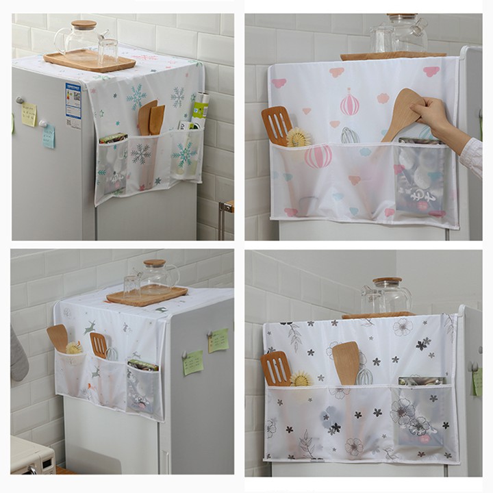 Giới thiệu HCM - Khăn phủ tủ lạnh chống thấm nước kèm 6 ngăn đựng đồ tiện lợi