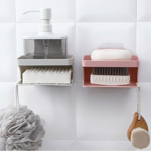 Nhà cửa & Đời sống > Đồ dùng phòng tắm > Kệ đựng xà phòng || HCM - Khay xà bông 2 tầng kèm 2 móc treo đồ tiện lợiCòn hàng