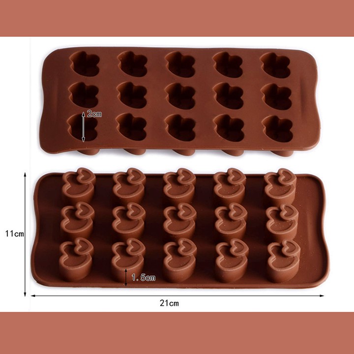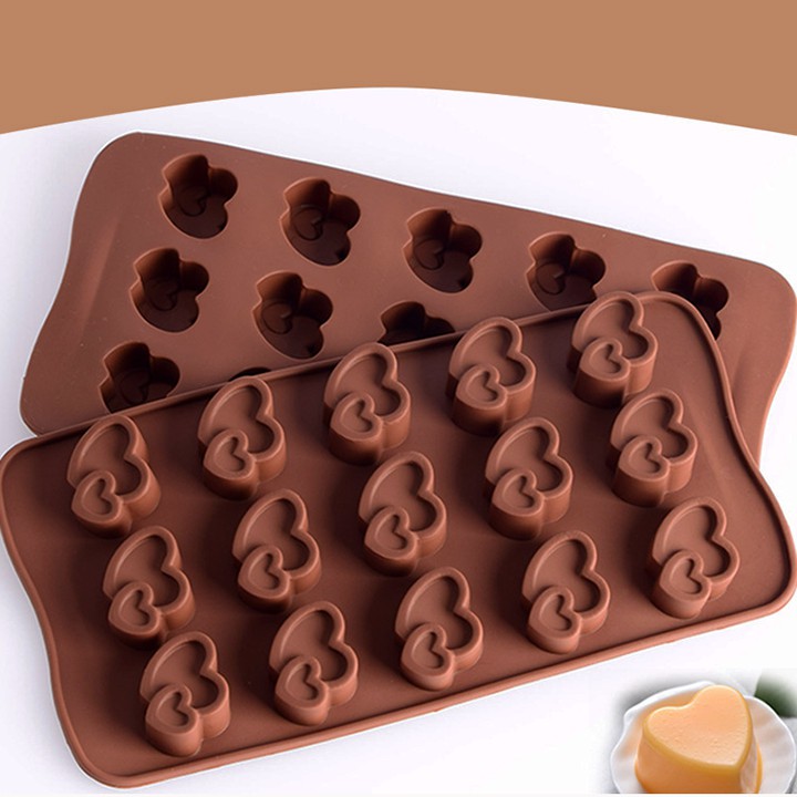 HCM - Khuôn silicon đổ socola, rau câu, kẹo dẻo đường hình tim đôi 15 viên