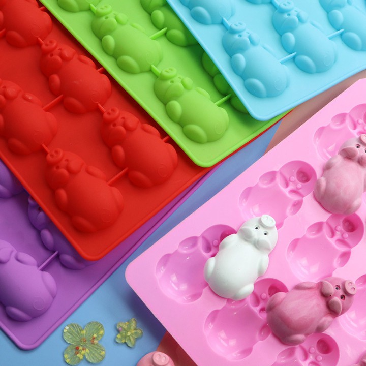 Giới thiệu HCm - Khuôn silicon heo nằm 12 con đổ socola, rau câu, kẹo dẻo