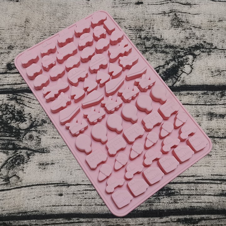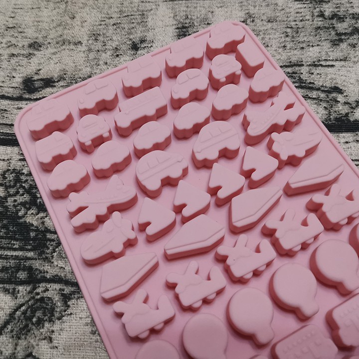 Nhà cửa & Đời sống > Dụng cụ nhà bếp > Dụng cụ nướng & trang trí bánh || HCM - Khuôn silicon phương tiện vận chuyển máy bay tàu xe làm kẹo dẻo kẹo chip 64 viênCòn hàng