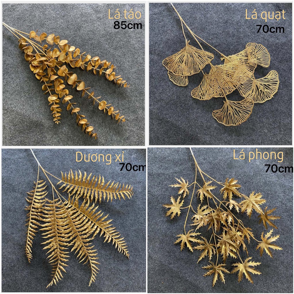 [HCM] Lá táo vàng kim giả - nhánh cây màu gold màu kim giả, phú quý may mắn tài lộc trang trí nhà cửa, lễ tết, đám cưới