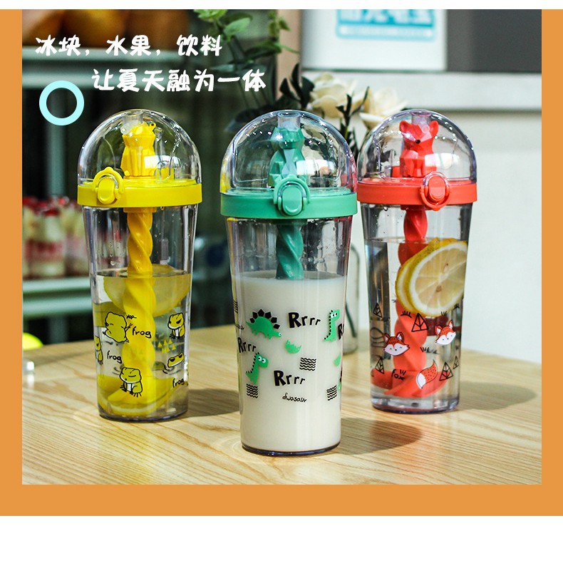Giới thiệu HCM - Ly nước 500ml tự khuấy pha chế nước Ếch Khủng Long gấu Koala Cáo