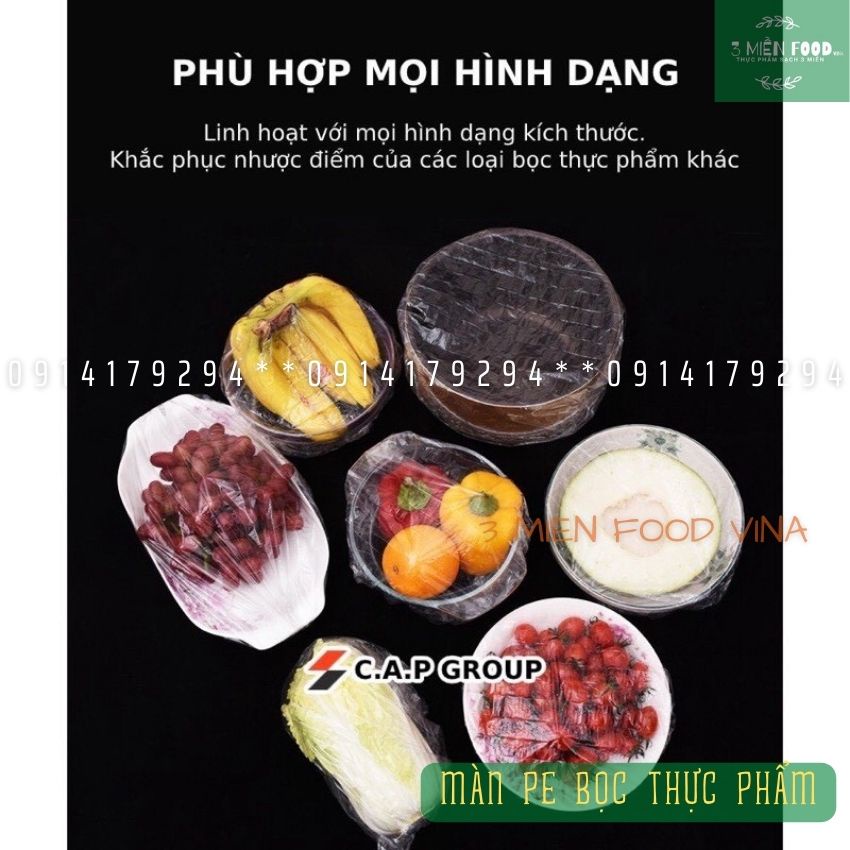 [HCM]Màng bọc thực phẩm,màng pe bọc thực phẩm có thun,màng pe bảo quản thực phẩm,túi gấu có chun bọc đồ ăn co giãn-3mien