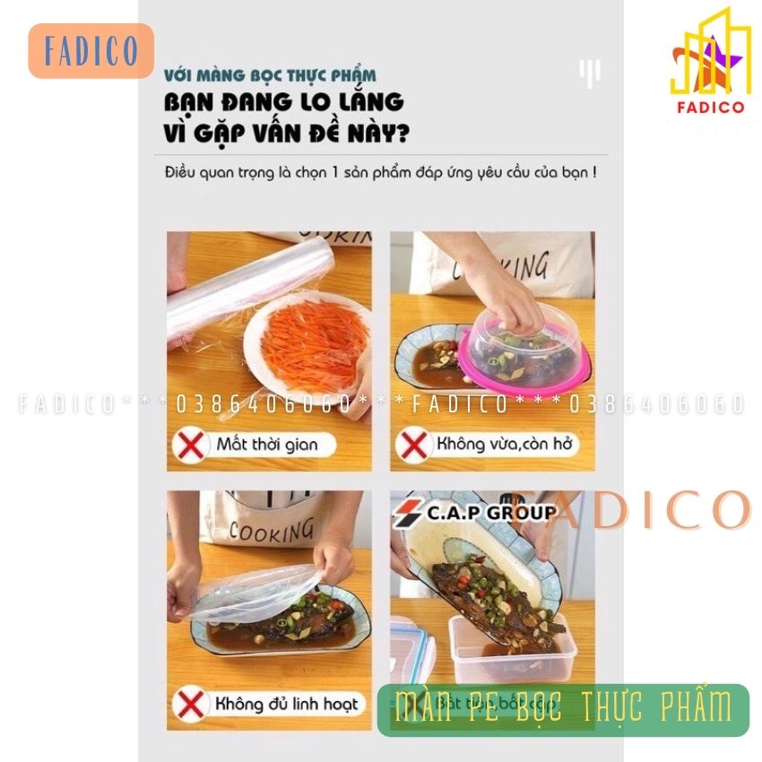 Giới thiệu [HCM]màng bọc thực phẩm PE,màng pe bọc thực phẩm,màng bọc thực phẩm có thun,túi gấu có chun bọc đồ ăn co giãn-fadico