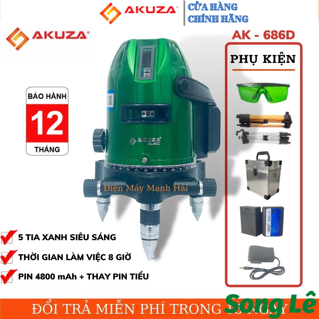 CHÍNH HÃNG AKUZAMáy cân mực laser 5 tia xanh AKUZA AK- 686DMáy cân mực Laser 5 tia xanh AKUZA AK-686D tại Điện máy Mạnh Hải là sản phẩm được nhập khẩu chính hãng. Với thiết kế bền bỉ, tiện lợi, pin dung lượng lớn, ứng dụng đa dạng, đặc biệt giá cả rất phải chăng vừa túi tiền của nhiều người.
