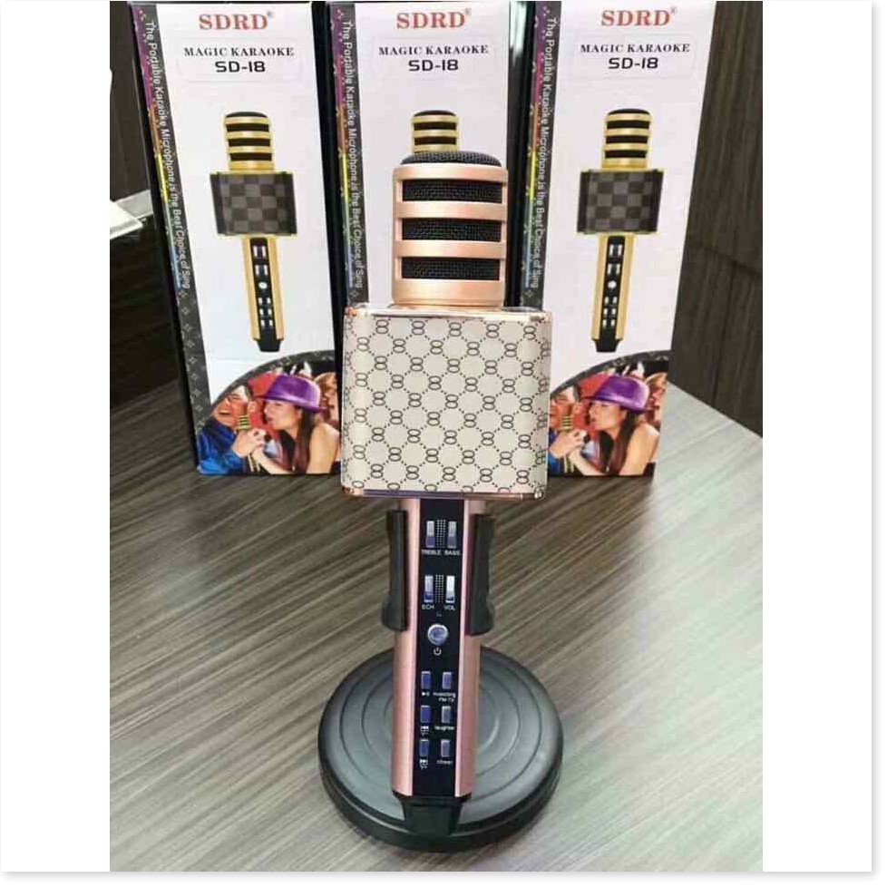Micro Karaoke Bluetooth SD18 hát cực chất.Mic SD- 18 là phiên bản mới nhất của dòng micro Bluetooth Karaoke kèm loa SD đình đám trên thị trường. Đây là thiết bị giúp kết nối với điện thoại Smartphone thông qua sóng Bluetooth. Nhờ trang bị cả loa và mic trên cùng một sản phẩm nên chỉ cần mở một bản nhạc bất kì từ điện thoại là có thể phát trực tiếp ra loa, thỏa thích hát karaoke ngay tại chỗ với chất lượng âm thanh hay, to, rõ cực đỉnh.