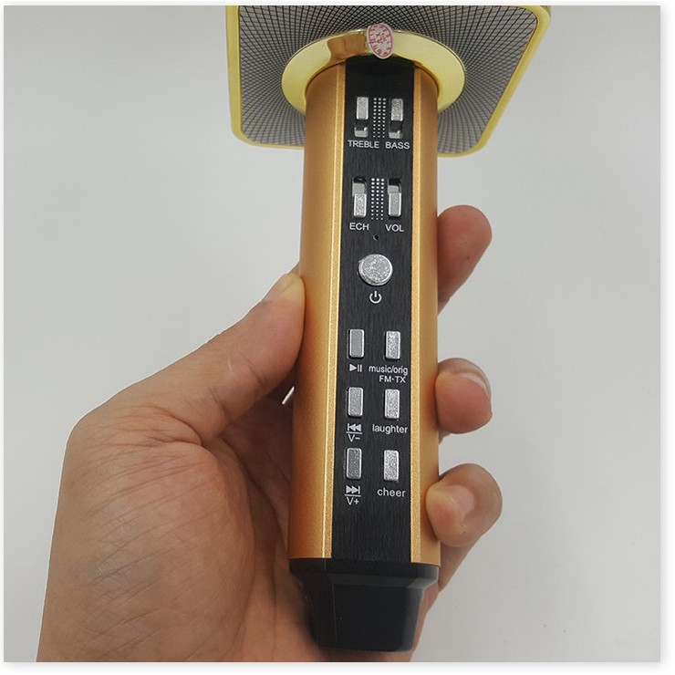 - Tích hợp sẵn 7 phím bấm và gạt trên thân loa để người dùng có thể tự điều chỉnh các thông số như: Treble, bass, mic, Play/Stop/Mode/Power, Echo, Next/up volume, Pre/down volume