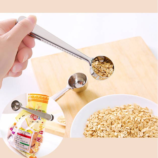 HCM - Muỗng inox múc gia vị, ngũ cốc kèm kẹp miệng túi