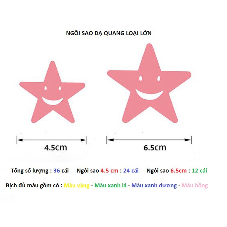 (HCM) Ngôi sao dạ quang kích thước lơn 3.5-4.5 cm 36 cái/ bịch-decalhcm