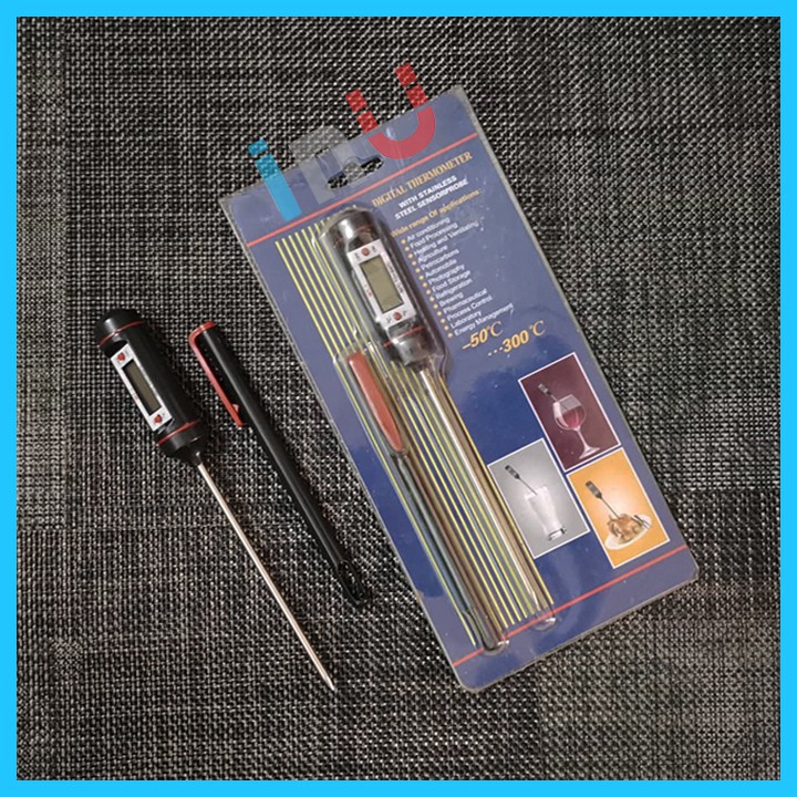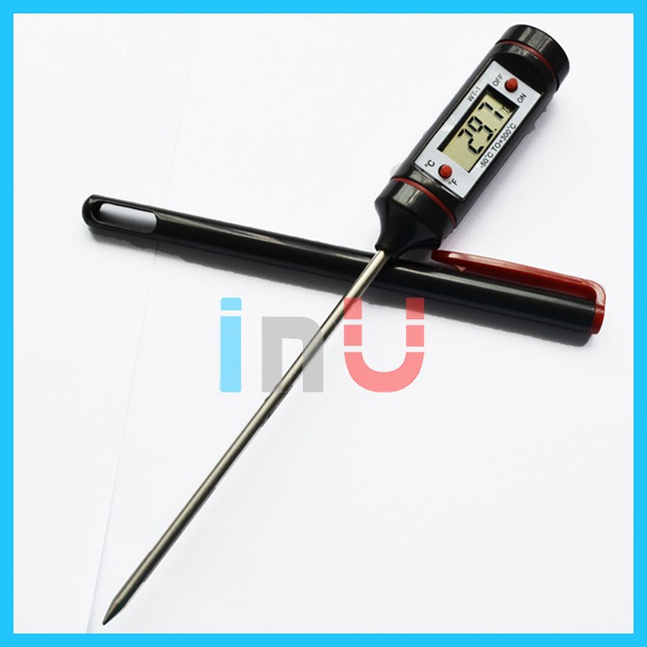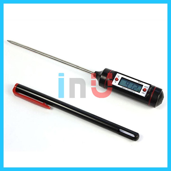 Meta Decription: Mẫu mới dạng cây viết, có nắp đậy bảo vệ que nhọn an toàn cho người dùng. Dùng đo nhiệt chất lỏng như nấu nước đường, kẹo, mứt, flan.. hoặc quay thịt tảng to như heo quay, thịt quay... Đo độ tối đa 300 độ C, chuyển độ F và độ C*** Kích thước: 18cm x 2cm