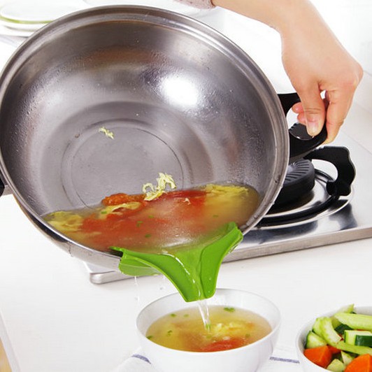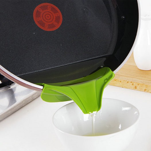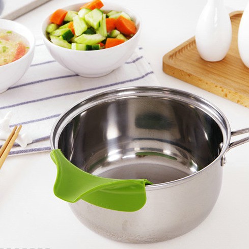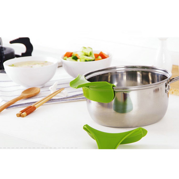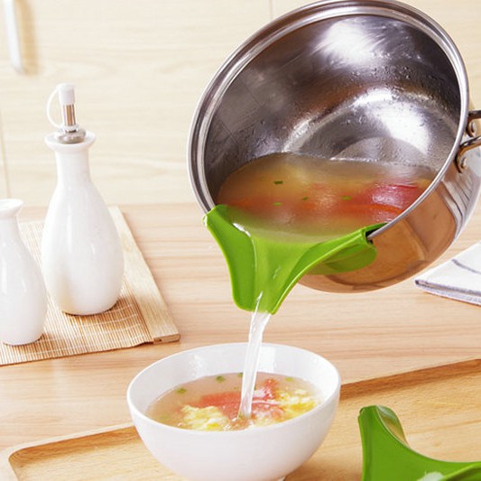 Phễu Silicon gắn nồi, chảo hay các vật dụng làm bếp khác, giúp việc đổ nước canh, dầu...được dễ dàng và sạch sẽ, không làm dơ bếp- Kích thước: 12cm x 4.5cm