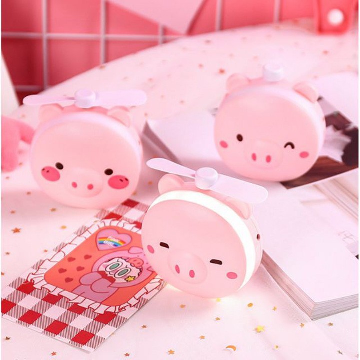 Giới thiệu [HCM] Quạt Sạc Heo Mini Gương Đèn 3in1