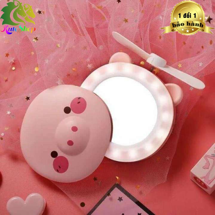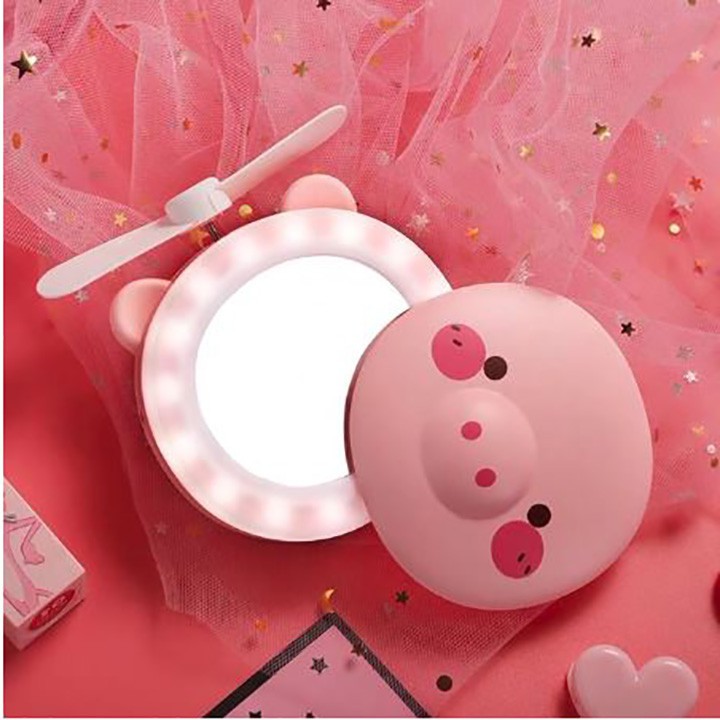 [HCM] Quạt Sạc Heo Mini Gương Đèn 3in1