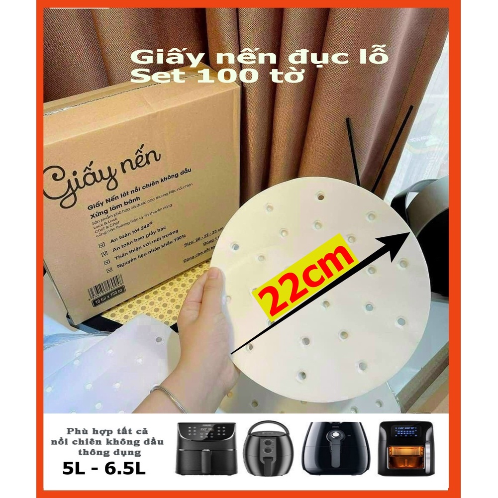 SET 100 TỜ GIẤY NẾN TRÒN ĐỤC LỖ LÓT NỒI CHIÊN KHÔNG DẦU - XỬNG HẤP LÀM BÁNH 22 cm----------------------