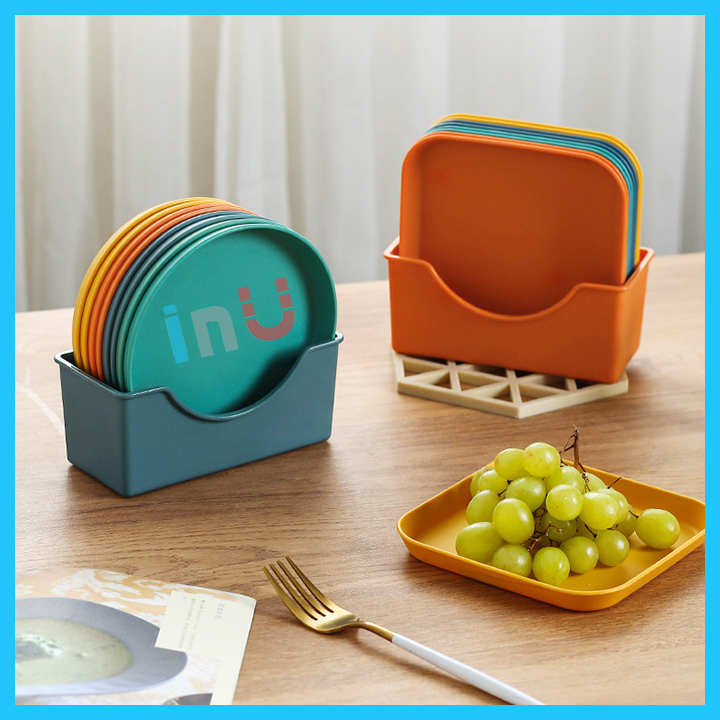 *** Kích thước: đĩa vuông- tròn :14.5cm x 1.6cm , khay đựng đĩa 16cm x 7.8cm x 7cm*** Chất liệu: nhựa, dùng được trong lò vi sóng