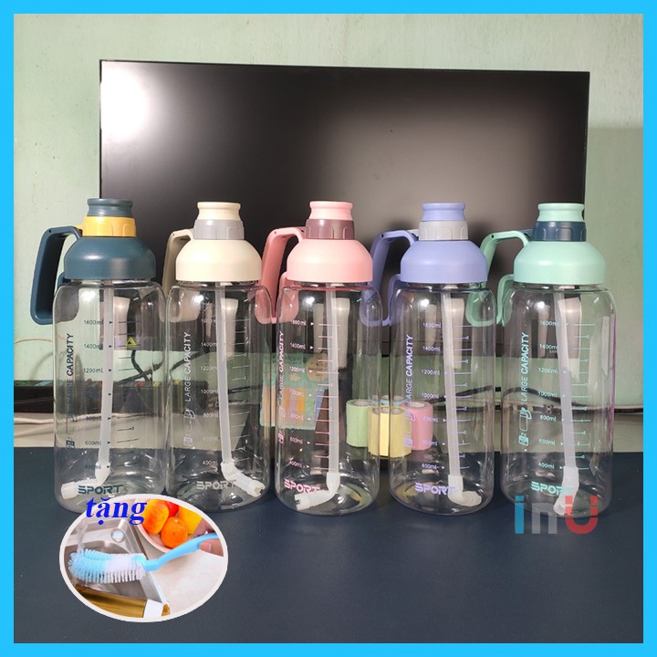 Giới thiệu HCM - [Tặng cọ rửa dài 30cm] Bình nước 1800ml làm detox thanh lọc cơ thể, mang tập gym vận động thể thao