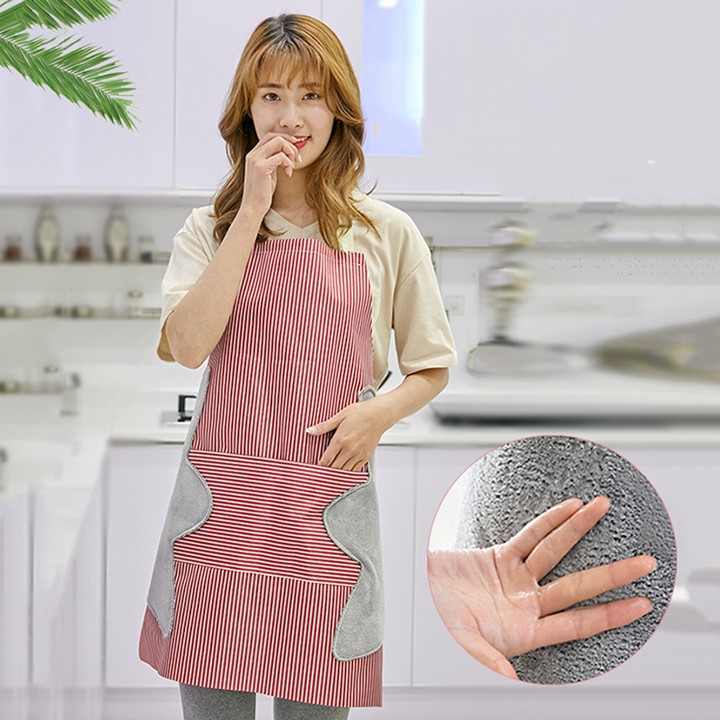 Nhà cửa & Đời sống > Dụng cụ nhà bếp > Tạp dề & gắng tay nấu nướng || HCM - Tạp dề cao cấp sọc tối giản kiểu Nhật chống bám dầu mở kèm khăn lau tay tiện dụngCòn hàng