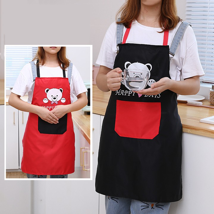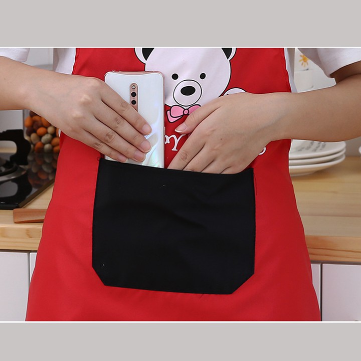 HCM - Tạp dề gấu Happy cao cấp vải dày túi vuông