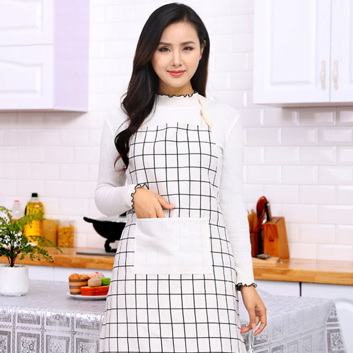 Nhà cửa & Đời sống > Dụng cụ nhà bếp > Tạp dề & gắng tay nấu nướng || HCM - Tạp dề vải họa tiết caro tối giản kiểu NhậtCòn hàng