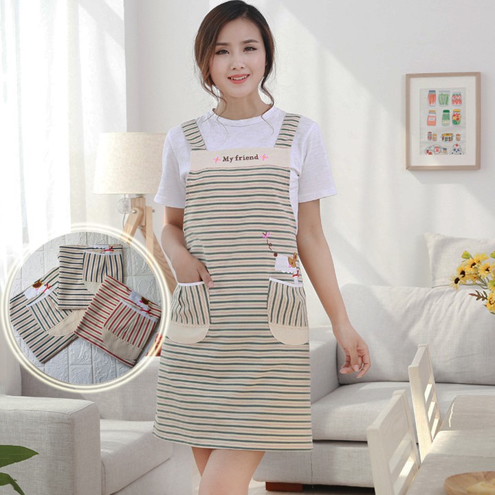 HCM - Tạp dề vải sọc ngang trẻ trung kiểu Hàn My friend