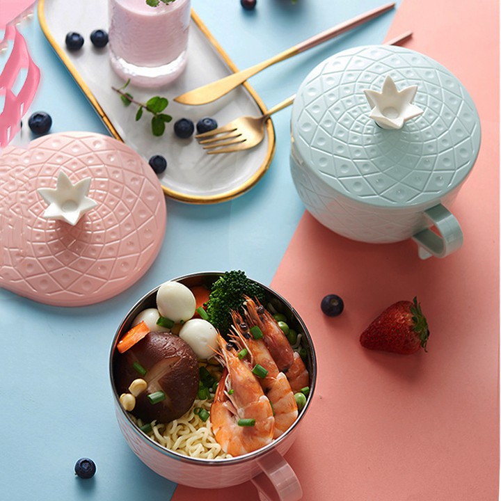Nhà cửa & Đời sống > Bộ đồ bàn ăn > Lồng bàn || HCM - Tô giữ nhiệt pastel vân trái thơm kèm muỗng và nắp đậy chống bụi gián côn trùngCòn hàng