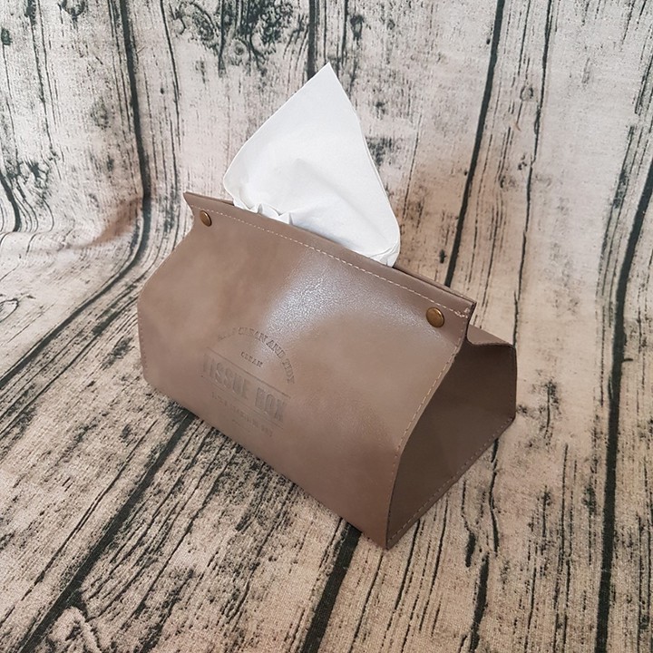 HCM - Túi da PU đựng khăn giấy gam be bụi trần cá tính