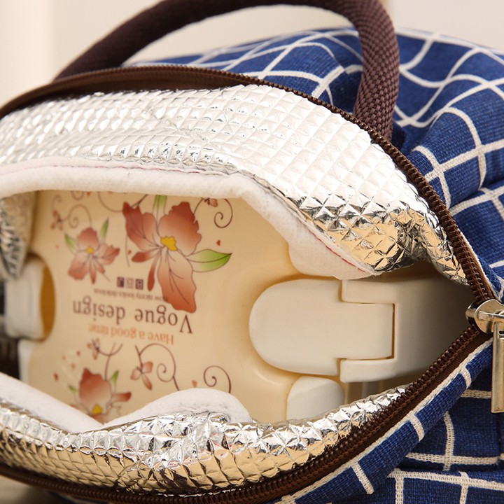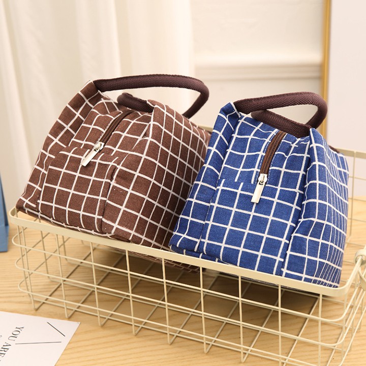 HCM - Túi giữ nhiệt họa tiết caro kiểu Nhật đơn giản tinh tế