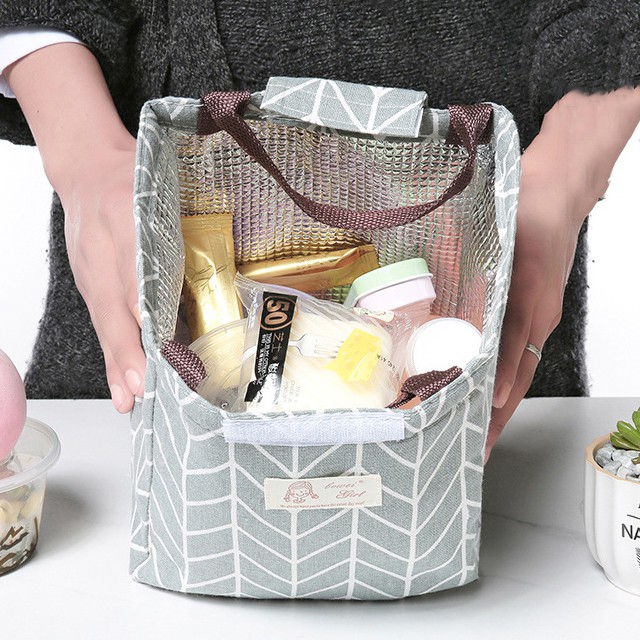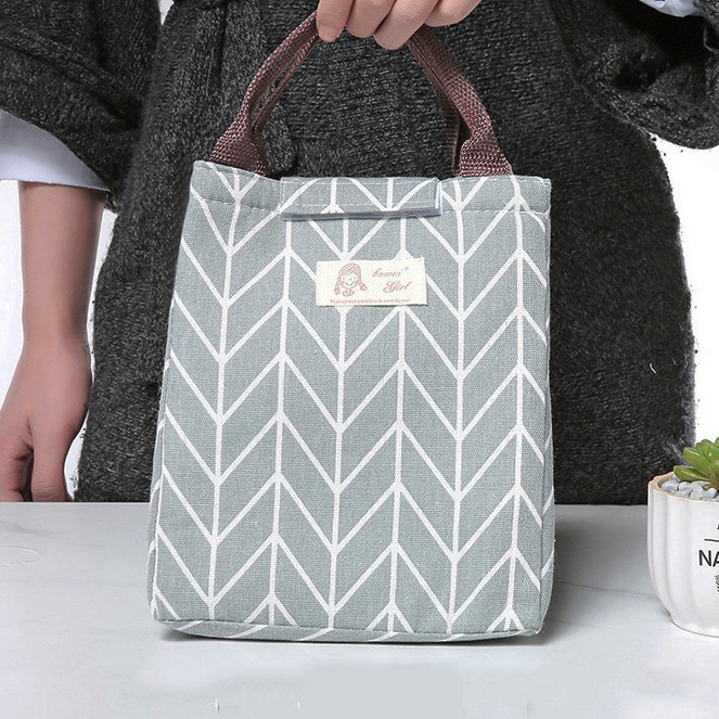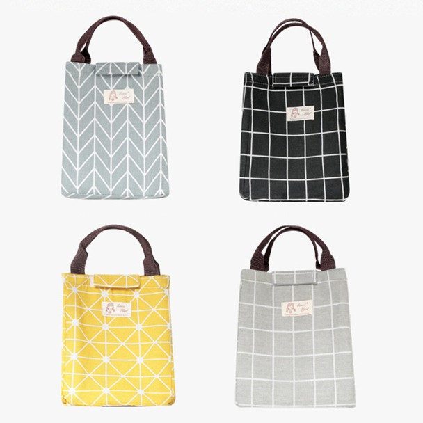 HCM - Túi giữ nhiệt kiểu Nhật họa tiết caro, sọc cách điệu