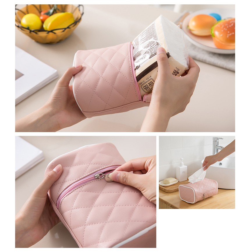 Nhà cửa & Đời sống > Sắp xếp nhà cửa > Hộp khăn giấy || HCM - Túi Simili mềm đựng khăn giấy sọc hình thoi cao cấpCòn hàng