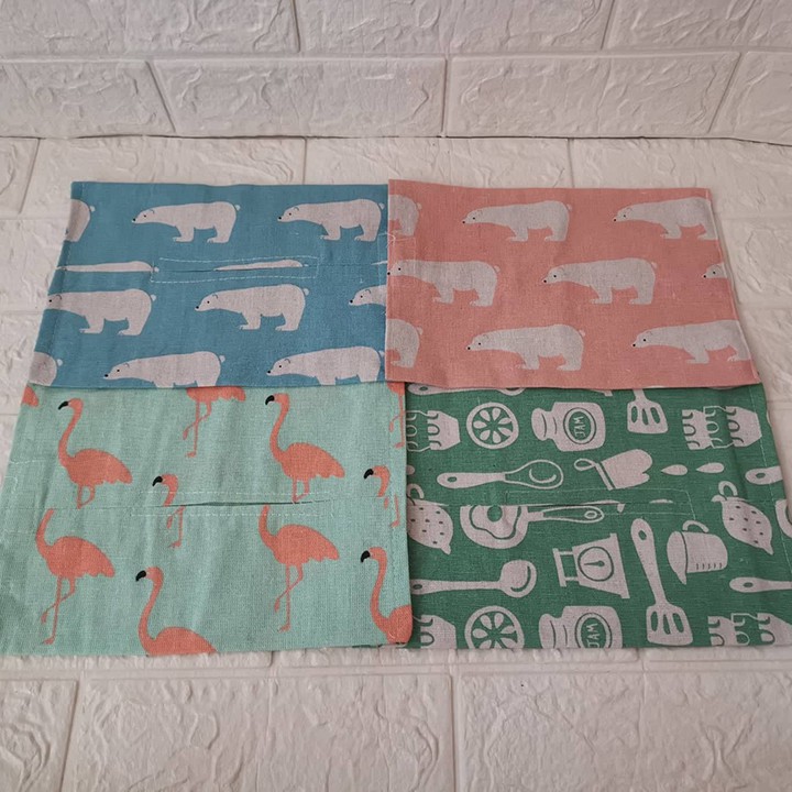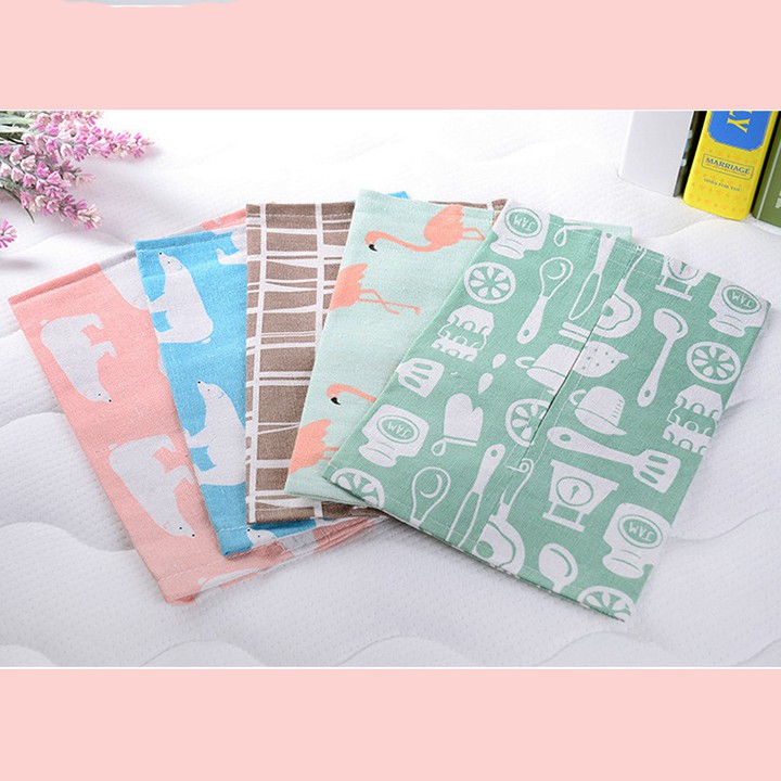 HCM- Túi vải đựng khăn giấy họa tiết gấu hạc xanh ấm trà và vân gỗ