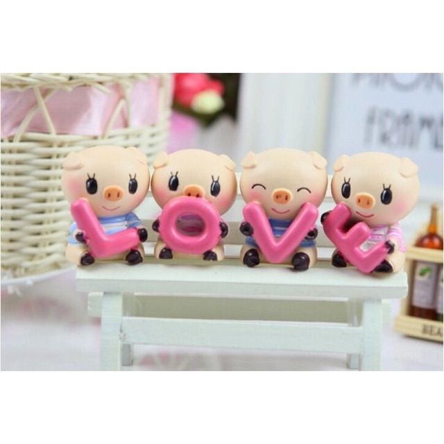 Bộ tượng 4 chú heo ôm chữ LOVE chất liệu sứ kích thước nhỏ gọn thích hợp trang trí bàn học , kệ mini , trên xe hơi và những chỗ có diện tích nhỏ . Kiểu dáng dễ thương , bắt mắt dễ làm quà tặng cho các bạn nữ trong những dịp lễ valentine hay sinh nhật và các ngày lễ khác .#tuong4chuheo