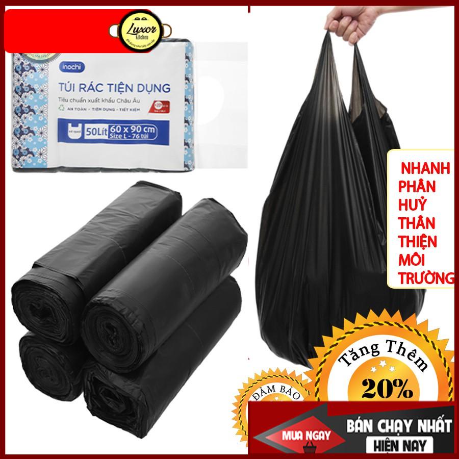 [ HĐ 300K giảm 70K ship] Túi rác đen 2 quai tiện dụng (4 cuộn 1kg) INOCHI -Tự hủy thân thiện môi trường Size 10L-25L-50L