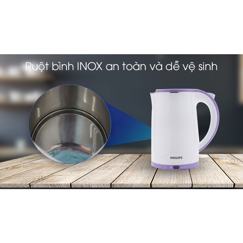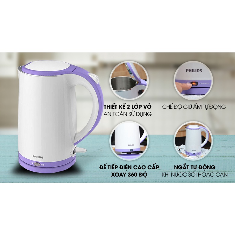 - Bình đun siêu tốc giữ nhiệt Philips 1.7 lít HD9312 với thân bình 2 lớp chống nóng tốt, hạn chế bám bẩn, tiện vệ sinh, ruột bình inox SUS 304 cao cấp