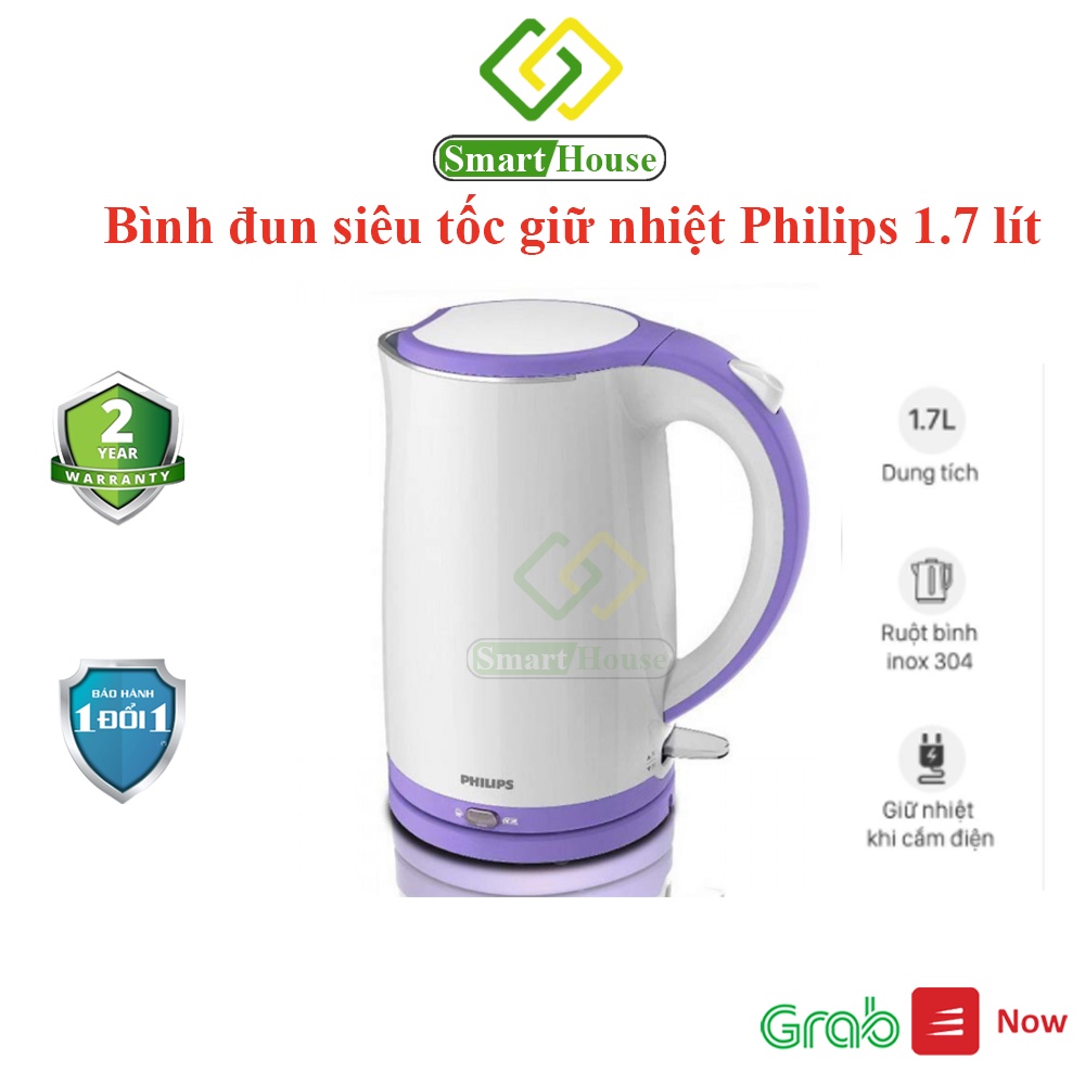 TẠI SHOP MÌNH: FREESHIP TỪ ĐƠN 50K NHA CẢ NHÀ🍀 Bình đun siêu tốc giữ nhiệt Philips 1.7 lít HD9312 1800W - Hàng chính hãng - Smart House