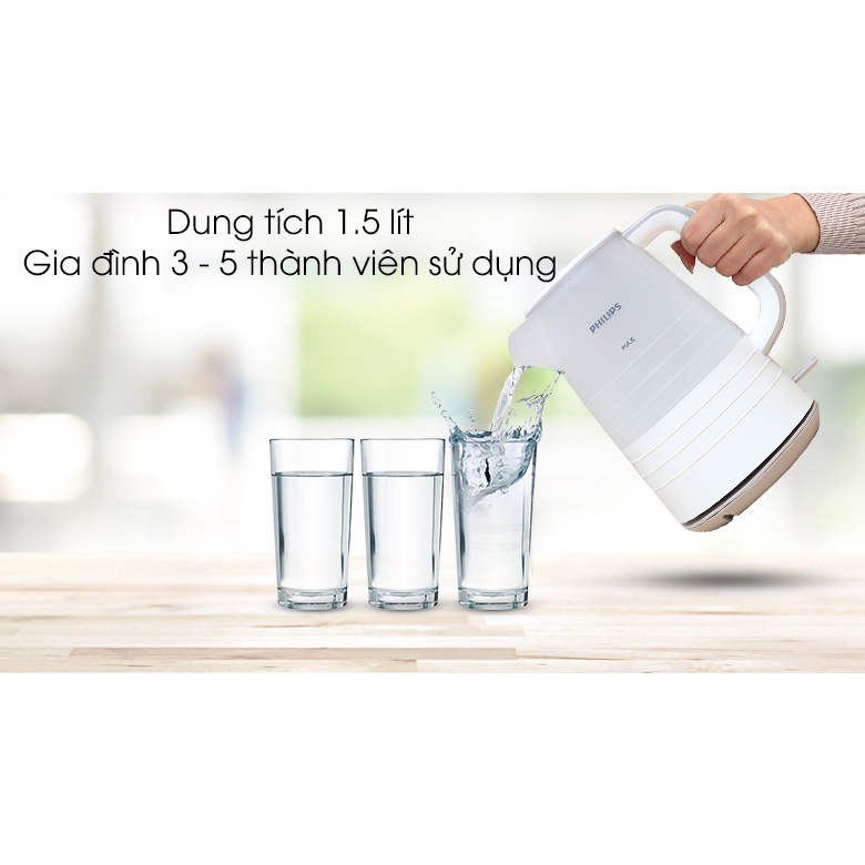 - Bình siêu tốc Philips HD9334 với dung tích 1,5l có khả năng đáp ứng tốt nhu cầu nước nóng cho từ 3 - 5 người dùng