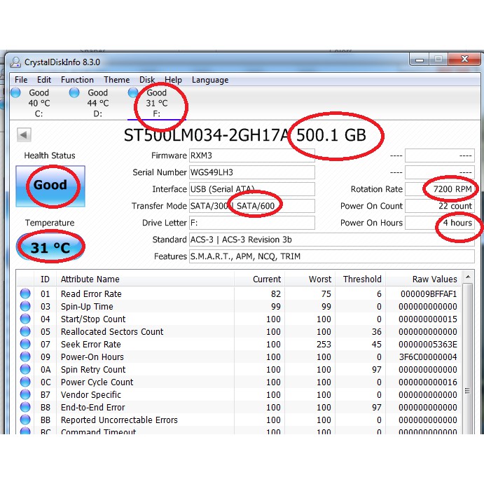 Giới thiệu Hdd 500gb 2.5 laptop toshiba sata 3 5400pm tháo máy, còn mới 100% .Sức khỏe 100%