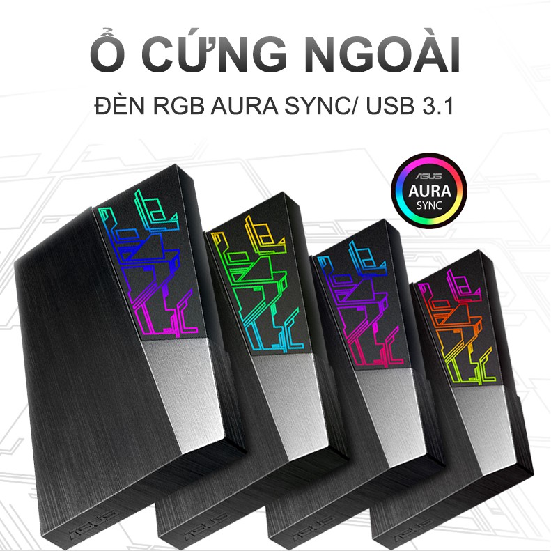 HDD BOX Asus FX 1TB/ 2TB Aure Sync RGB, USB 3.1 Gen1/ Mã hoá AES 256 bit, Sao lưu tự động ( (EHD-A1T/EHD-A2T)